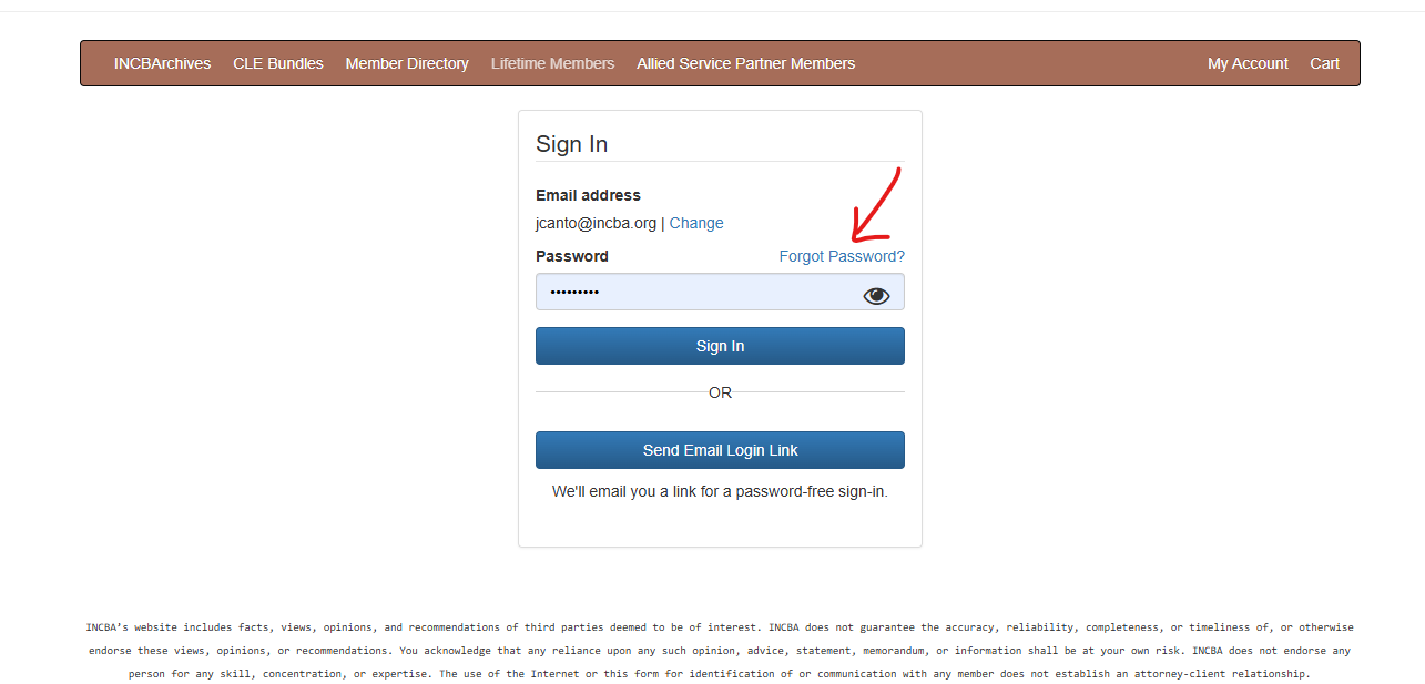 - If you do not remember the email address you used when you signed up, please email support@incba.org for an assist.